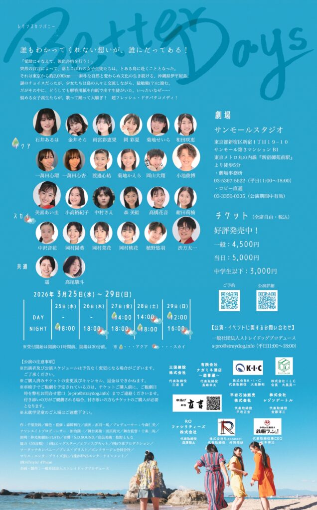 ・現在、劇場にて物販を実施予定です。公演グッズや物販の詳細は決まり次第、本ページにて発表いたします。